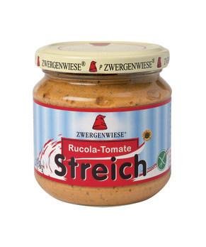 Tomatenmark* 25 % einfach konzentriert, Sonnenblumenkerne* 18 %, Tomaten* 15 %, Sonnenblumenöl*, Rucola* 10 %, Wasser, Zitronensaft* aus Zitronensaftkonzentrat*, Zwiebeln* 5%, Kartoffelstärke*, Steinsalz, Pfeffer*.