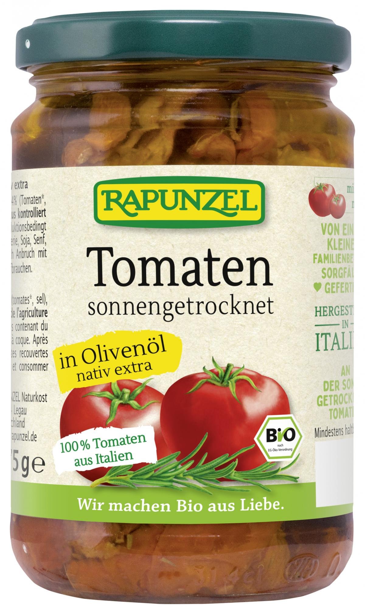 Mild-würzige Delikatesse aus Italien. Die an der Sonne getrockneten Tomaten werden in bestem Olivenöl nativ extra mit feinem Rosmarin eingelegt. Die Herstellung erfolgt in einem Familienbetrieb in Italien. Eine Bereicherung für die mediterrane Küche.