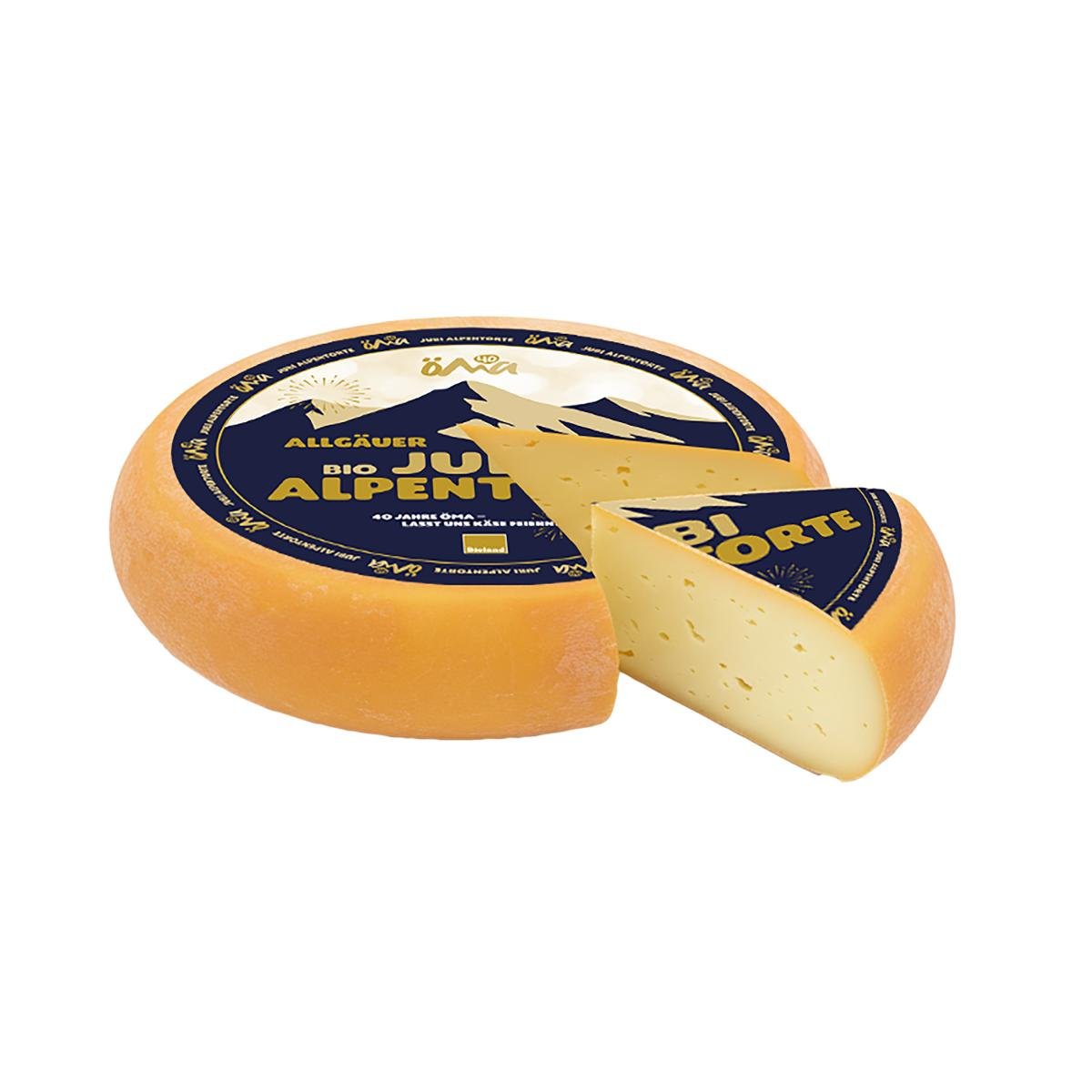 Zu unserem 40-jährigen Jubiläum präsentieren wir eine ganz besondere Käsespezialität: die ÖMA Jubi Alpentorte. Exklusiv von Käsermeister Max Sontheim in der Käsemanufaktur Allgäu in Kimratshofen aus bester Bioland-Milch kreiert, vereint dieser halbfeste Schnittkäse traditionelles Handwerk und Käserkönnen mit einem festlichen Auftritt. Mit ihrer tortenähnlichen Form, der cremig-weichen Konsistenz und einem feinwürzigen, harmonischen Aroma ist die ÖMA Jubi Alpentorte ein echter Genussmoment – zum Jubeln für den Gaumen ebenso wie fürs Auge, nicht zuletzt wegen des schmucken Vlieses auf dem Käse. Eine „Käsetorte“ der ganz besonderen Art!